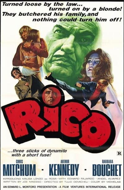 Description: Ricco Aversi (Christopher Mitchum) is the layabout son of a powerful mobster. After his father was killed, Ricco had a run in with the man who usurped his father, Don Vito (Arthur Kennedy), who in turn had Ricco thrown in jail on trumped up charges for a couple of years. Ricco emerges form jail to find his family now ostracized, living on the outskirts of Rome, and to make matters even more humiliating Ricco's former flame, Rosa (Malisa Longo), has shacked up with Don Vito. Ricco finds a sympathetic ally in a counterfeiter and his vixen niece, Scilla (Barbara Bouchet). Soon the Karate chopping Ricco is jabbing away at Don Vito, breaking into his compound, robbing him of his payoffs, all the while trying to uncover the identity of the man responsible for the hit on his father. Ricco gets more emboldened. Don Vito gets increasingly angry and is the kind of gangster prone to throwing men into the acid bath at his soap factory. So, it doesn't take a genius to realize the two are on a collision course.